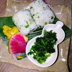 塩気 強めに漬けた葉は胡麻と共に菜飯に