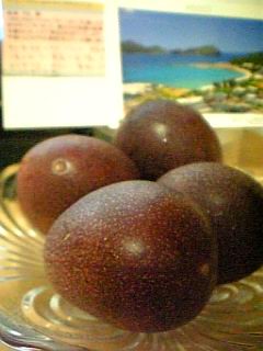 さっき、宅配便が来ました。「なんだろう?」そう思いながら、箱の配送元を見ると「小笠原海運」はぁ!?と思って、バリバリと箱を開けると入っていたのがこれでした♪小笠原産 パッションフルーツ※ 気に入った写真は、クリックしていただけると嬉しいです♪実はね、愛読しているおがまる通信のプレゼントに当選したのでした。カードには、このBlogの感想なんかも書いてあってなんだか、とっても嬉しくなりました。実は、パッション、大好きなんですよね(^▽^*)ノ自分でも2005年に育てたのですが、2個しか実がならなかったのでした。しかも、私がいない間に食べられてしまい食べられなかったんです。・°°・(((p(≧□≦)q)))・°°・。ウワーン!!そんな悲しい思い出が蘇りました。今日は、お休みなのでこれからMちゃんの家に行きます。貰いものでなんですが、持って行って小笠原をおすそ分けしようかなって思っています。皆で味わってこようっと。トロピカルフルーツ♪ ↓ランキングに参加しています(*^▽^*)1日1クリックお願い致します(^ー^* )♪