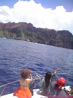 一本目前にイルカ船が怪しい動きをしているのを発見!