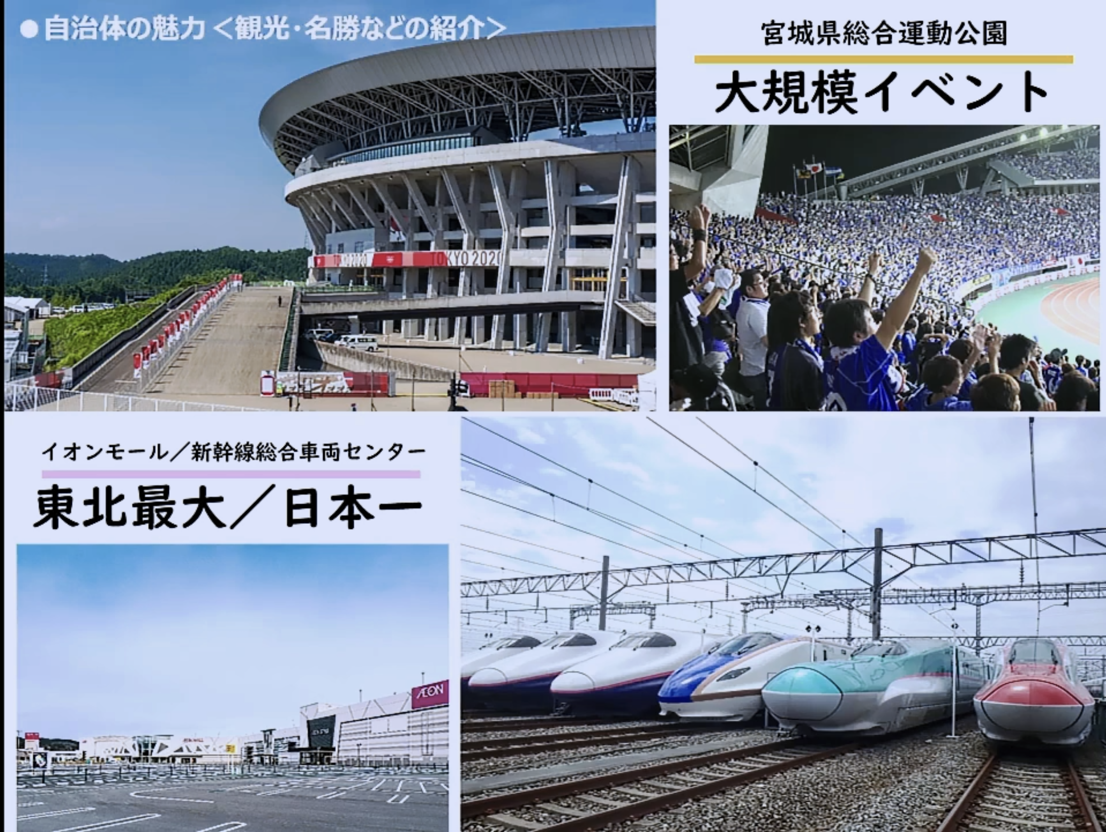 東京2020オリンピック競技大会のサッカー競技会場や新幹線総合車両センターなどもあります。