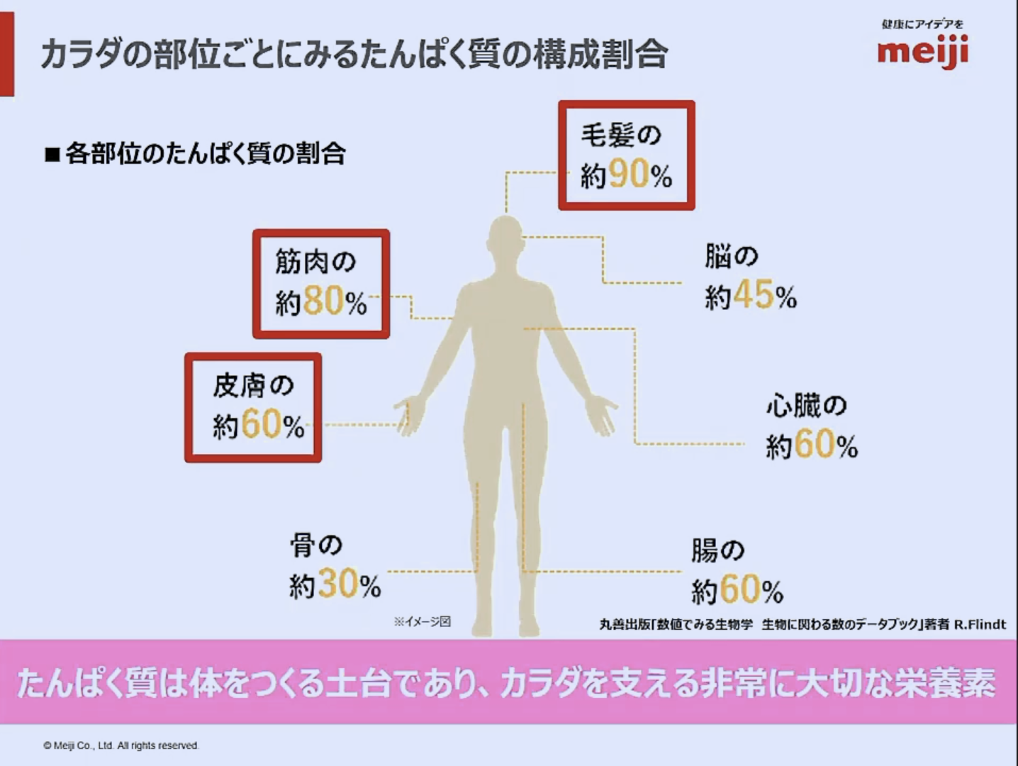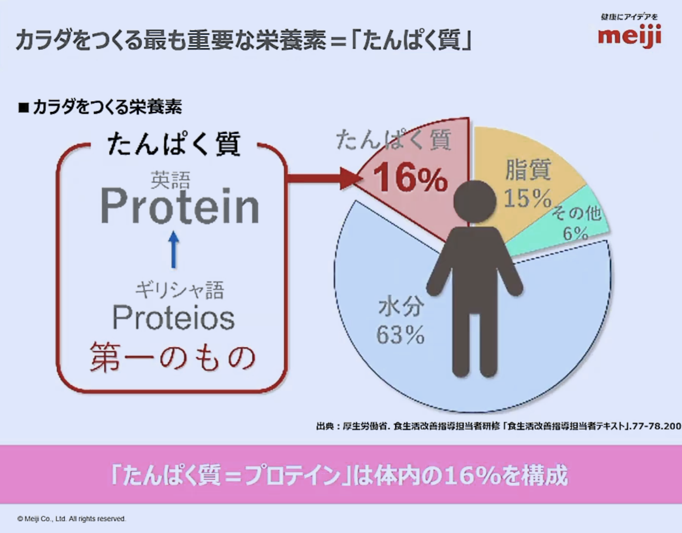 もちろん身体を鍛えている人にも大事な栄養素だと思いますが、それだけではなく、たんぱく質(プロテイン)は身体をつくる重要な栄養素なのです。