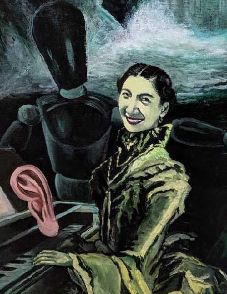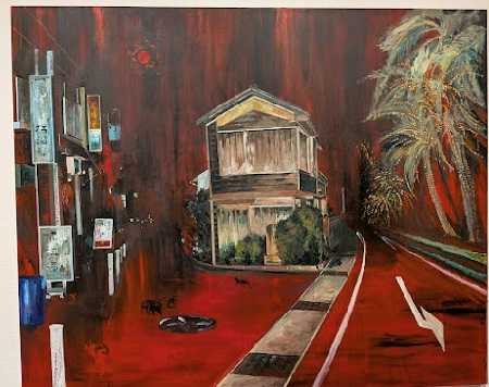 展示室に入ると遠くからでもひときわ目立つ赤い絵でした。寺内貫太郎一家のオープニングのイラストや出演でなじみの美術家、グラフィックデザイナー、版画家、作家の横尾忠則先生の絵でした。シリーズになっているY字路という作品で、宮崎県立美術館の招きで滞在して描かれたとの事。真ん中の家の左は飲み屋街、右はヤシ並み木。私だったら迷わず左に行きそうです。■参考リンク横尾忠則 y字路Google AIによる概要横尾忠則にとって「Y字路」は、2000年頃から精力的に取り組んでいるライフワーク(主要なテーマ)の一つです。 特徴と背景故郷への回帰と着想: Y字路のシリーズは、横尾の故郷である兵庫県西脇市内の風景がモチーフになっています。かつての通学路にあった模型店跡地をインスタントカメラで撮影した写真からインスピレーションを得て制作が始まりました。「選択」の象徴: Y字路は、絵の前に立つ鑑賞者に「どちらに進むべきか」という選択を迫るような感覚を与えます。横尾自身も、このモチーフに「死のエネルギー」を感じると語っており、生と死、現実と虚構の境目を象徴しているとも解釈されています。光と闇のコントラスト: 制作の参考にした写真は、フラッシュを焚いて撮影されたため、手前が明るく反射し、奥が闇に溶け込むような独特の構図になっています。この光と闇の対比が、作品に空間的な歪みや非現実感を与えています。反復と変奏: 同じ場所を描き直したり、異なる場所や時間を組み合わせたりするなど、「反復」という横尾作品の特徴的な手法が随所に見られます。制作手法: 描き始めの手順がパターン化されているため、比較的スムーズに制作を進めやすいモチーフであったことが、数多くの作品を生み出す要因の一つとなったようです。 横尾は「世界中で誰もY字路を作品化していなかった」ことから、このテーマに取り組んだと語っています。2024年には横尾忠則現代美術館で「横尾忠則 ワーイ!★Y字路」展が開催されるなど、現在も重要なシリーズであり続けています。 横尾忠則 久世光彦Google AI による概要美術家の横尾忠則と、テレビプロデューサーの久世光彦は、『寺内貫太郎一家』などのドラマで協力しました。横尾はこれらのドラマでタイトルデザインを担当し、久世から出演依頼を受けたこともあります。 『寺内貫太郎一家』: 横尾がタイトルデザインを手掛けました。横尾の出演: プロデューサーの久世から、同ドラマへの出演依頼があったとされています。その他の作品: 久世光彦は『時間ですよ』シリーズや『ムー』、『ムー一族』などのドラマをプロデュースしました。協力関係: 横尾と久世は、これらのドラマ制作を通じて協力関係にありました。 寺内貫太郎一家全Y字路 大型本 – 2015/8/7横尾 忠則 (著)Wikipedia:横尾忠則横尾 忠則(よこお ただのり、1936年6月27日 - )は、日本の美術家、グラフィックデザイナー、版画家、作家。実弟の成瀬政博は画家・イラストレーター。長女の横尾美美も美術家[1]。日本芸術院会員。人物兵庫県西脇市出身。20歳までを西脇で過ごす[2]。幼少期に西脇でさまざまな超常現象を経験。死の世界に憧れを抱く[3]。神戸新聞社にてグラフィックデザイナーとして活動後、独立。三島由紀夫に出会い三島の「聖俗一体」的言動に触発される。1970年の三島の死をきっかけにその後の15年間をオカルティズムや神秘主義まで包括した精神世界に傾斜してゆくが、それらが大いなる錯覚だったと気づき「私」の探求の延長線上で絵画に出会う。精神世界と絵画は全く別の存在だと考えていたが、後にこの両者が自分すら知らない深いところで結びついていると感じるに至る[3][4]。向田邦子脚本によるテレビドラマ『寺内貫太郎一家』(1974年・TBS)では、倉田という謎の多い人物を演じた。1980年7月にニューヨーク近代美術館にて開催されたピカソ展に衝撃を受け、その後、画家宣言。以来、美術家としてさまざまな作品制作に携わる。