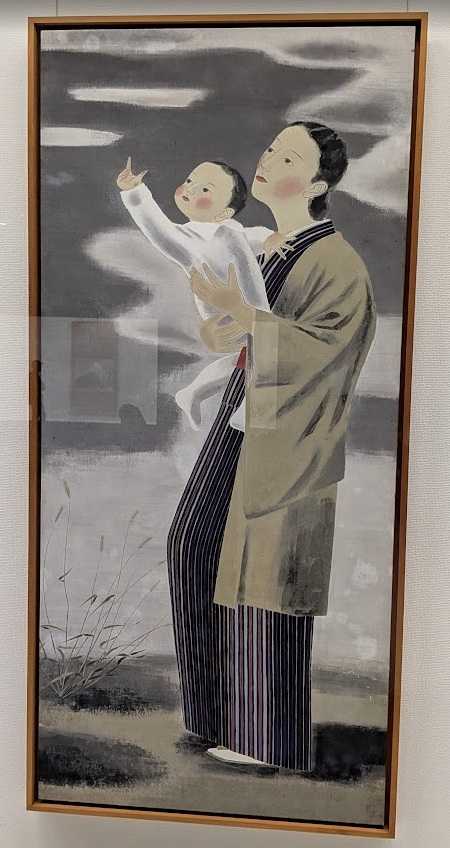 5,000,000アクセスありがとうございました。最近急速に寒さを増してきましたが皆様いかがお過ごしでしょうか。暑いときに先延ばしにしていた問題を片づけていきながら、忙しい中にも自分の時間を作って旅行とか散歩とか楽しんでます。今年も残り2か月になりましたが皆様もインフルエンザに気をつけて健康におすごしください。先日ある実業家が多忙な中でも家族との時間を楽しむこつとして、家族とのスケジュールをまず確保して、それにあわせて仕事の段取りを組み立てていくというのを知り早速実践中です、家族はいませんが。わりとうまく行ってます。10月25日にでかけたついでに久々に東京国立近代美術館常設展に行ってきました。何回か行ったので大体見つくしたかと思ったらとんでもない、多くの感動的な作品に出会えました。そのうちの一つです。昭和9年制作で、亡くなった母の生まれた年です。お母さんと赤ちゃんが明るい未来を希望に胸ふくらませて見つめているのが印象的です。自分だけかもしれませんが、疲れ切った最近の日本人には少なくなった表情と思いました。母子吉岡堅二1934「絵画 母子」で検索していたら見つけた田中茂先生の絵です。観ていると、そんなに輝かしい未来のない自分にも元気が出てくるような絵で気に入ってます。インスタグラムをフォローしました。山上の母子(日本の雲・唐草の木)田中茂先生インスタグラム■参考リンクGoogle Ai 吉岡堅二 母子 解説吉岡堅二の作品『母子』(1934年)は、伝統的な日本画の技法に西洋の写実的な表現を取り入れた、吉岡堅二の初期の代表作です。 母子 - 東京国立近代美術館吉岡堅二(1906-1990)yoshioka-kenji | UAG美人画研究室作品情報制作年: 1934年所蔵: 東京国立近代美術館支持体・素材: 紙本彩色(額)サイズ: 181.0×83.6cm 解説主題:子供を抱いた母親の姿を、写実的に、そして温かみのある筆致で描いています。伝統的な日本画の画材を使用しながらも、人物の量感や表情、親子の間に流れる愛情が丹念に表現されています。構図:縦長の画面いっぱいに人物が配置され、鑑賞者に強い印象を与えます。技法:日本画の伝統的な画材である岩絵具や水干絵具を用いながら、西洋画の空間表現や写実性を融合させています。穏やかで落ち着いた色彩と、柔らかな線描が特徴です。制作背景:この作品が制作された1934年は、吉岡堅二が新興の日本画家として、自己の画風を模索し、確立しつつあった時期にあたります。伝統的な日本画の枠組みにとらわれない新しい表現を追求していた彼の姿勢がうかがえます。同時代の画壇では、写実的な表現を取り入れる日本画家が増えており、この作品も当時の潮流を反映していると言えます。 評価『母子』は、伝統と革新が融合した吉岡堅二の初期の傑作として高く評価されています。見る者に安らぎと感動を与える普遍的なテーマを扱いながら、新時代の日本画の可能性を示した作品と言えるでしょう。田中茂 【画家】 tanaka-shigeru:YouTubeWikipedia:田中茂 (画家)田中 茂(たなか しげる、1970年 - )は、日本の画家。岐阜県羽島市出身、在住。人物1970年、岐阜県羽島市に生まれる。子供のころから絵を描くのが好きで、12才の時に油絵を習ったのが絵画のはじめ。高校卒業後、父親の跡を継ぎ、建築塗装職人となる。外壁にペンキを塗った経験が、今では絵画の調色や配色に役立っている。 若い時には劇団へ所属。その際に、俳優としてミュージカルに出演する傍ら、大道具の背景画を描いていた。演劇に関わった経験も、絵に影響を与えている。2021年、本格的に絵を描き始める。スケッチブックに娘をデッサンし、それがきっかけで絵に夢中になり画家の道を歩み始める。 独学で絵の勉強をする中で、葛飾北斎で浮世絵とダイナミックな構図を学び、レオナルド・ダ・ヴィンチより黄金比率と遠近法を学んだ。 刷毛と筆の二刀流で、日美展をはじめ各展覧会にて入選や各章を授与している。