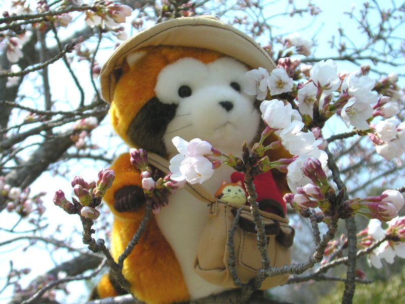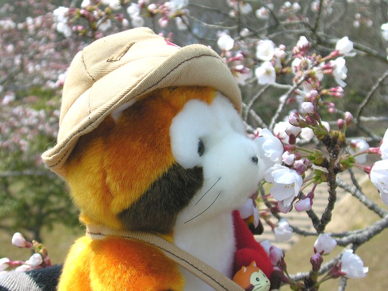 お花見に連れて行ってもらってラスカルくんも嬉しそうですね。