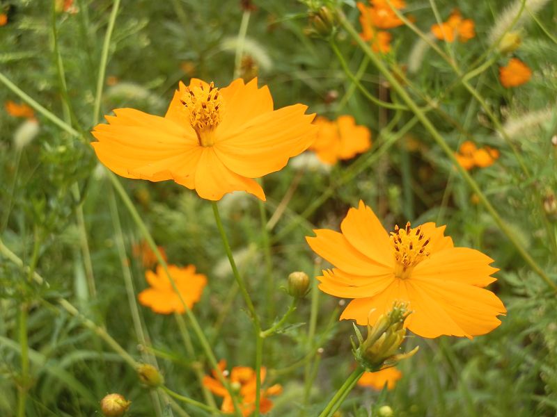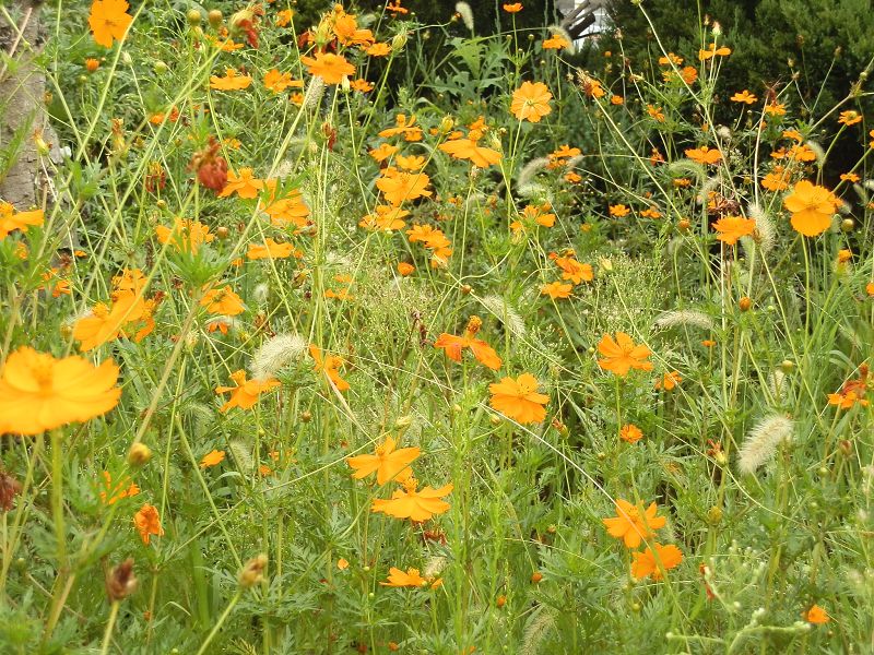 家の近くの交番の向かいにキバナコスモスがいっぱい咲いています。