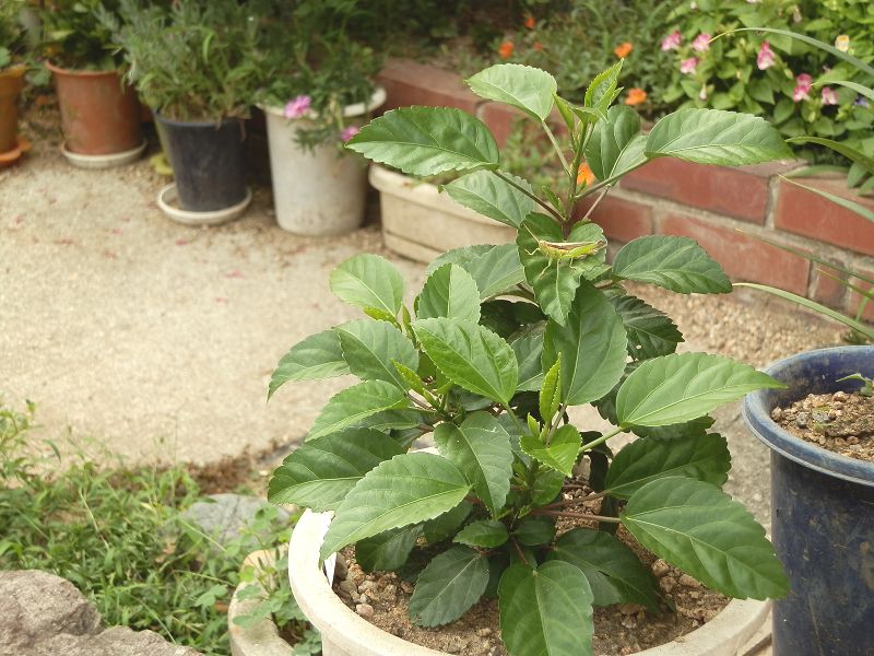 6月下旬に100円ショップで見つけてハナキリンと一緒に買ってきたハイビスカスが元気になかり大きくなっています。