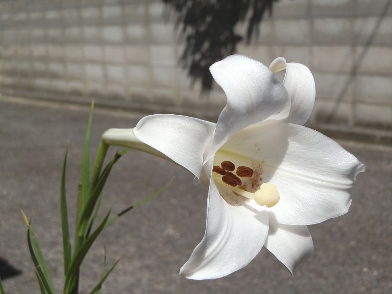 玄関前で鉢植えにしていたタカサゴユリの花が咲きました。
