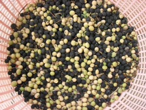 昨年家庭菜園に植えた枝豆が食べきれず、成熟してたくさん大豆となっていました。根っこから抜いて置いていたのを本当は昨秋のうちにさやから外しておくべきだったのですが放ったらかしになっていました。ゴールデンウィークでようやく時間が出来たので今日は、鞘からちまちま大豆を取り出す作業に没頭していました。黒いのあり白いのありきれいなのもありそうでないのもありですがナントカ全部マメをとりました分別・選別作業は次の休みにすることとします。ダッシュ村とかだったらこういうのから豆腐作ったりとかするんだろうけど家では炒り豆でおやつににしたり雑穀米に混ぜたりという感じになるかなぁ。煮るとしても甘いのはあまり好きではないので五目煮とかになると思います。