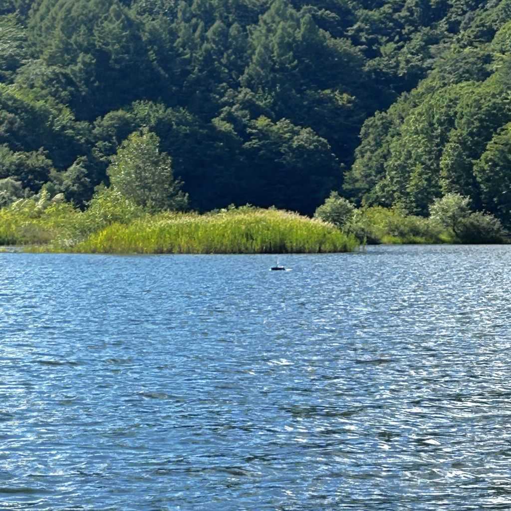 ◇2025年9月15日◇秋元湖バスフィッシング2025◇ 岸に釣り人らしき人が立っていました。…