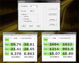 んまぁ、結構前のものになりますが。急にやりたくなったので。Gavotte Ramdiskというのをご存じでしょうか? 技術としては、PC内蔵のメモリをHDDの代わりとして使用するもので通常の回転式のHDDと比べると速さなどに雲泥の差です。メモリに余裕がかなりある人、32bitOSで3.2G以上のメモリ積んでを無駄にしてる人、そんな人にはかなりいいのでは? ただ、ソフトの公式なサイトが無いなんかの問題があるのでいろーいろと怪しいところはあります。それを、いったいどういったものなのかも含めて解説しちゃうよ!(やるときは自己責任でね まず、長期的な保存はできません、再起動するとその場所に保存したデータは消えます。あくまでメモリの容量を間借りしているだけです。今流行のSSDを軽く体感できます?(普通にSSDより早いですが…とりあえずスクリーンショットをぺたり。左がHDD右がメモリをRamdisk化したものです。みればわかりますが全然違います。 早いからなに?って言われてしまえばそれで終わりなのですがこの速さを生かしてみようじゃないですかーw 使い道の王道なのがインターネットキャッシュの保存場所をRamdiskにしてしまうことです。これでかなり速度がかわるはず?ふたつ目はPhotoshopなんかのスクラッチディスクの領域に当てて高速化する。みっつめは大きなメモリを持っていて余ってる人しか皆無ですがゲームを入れる、これによってロード時間を大幅短縮!!(再起動したら消えますよ?) これしかねーのかと言われれば嘘です、もっとあると思いますがアイディアがないのと、技術に腕が追い付いていないので私にはできません。とりあーえず解説いきますね。ttp://www.chweng.idv.tw/swintro/ramdisk.php先頭にh入れて飛んで下さい、直リンクだめっぽいので[下載位址]のアドレスクリックしてDLします。DLしたものを解凍、ramdisk.exeを機動しドライバをインストール(Install Ramdiskをクリック)ビスタは権利者で実行しないとだめっぽいです。成功したらメモリに作るRamdiskの容量を決めます。Disk Sizeで任意サイズを設定自分で打ち込んだ値だとブルーアウトするかもしれません私がなりました。容量を決めたらドライブレター(名前みたいなもの)を決めてapplyをおしてsuccesと出たら成功OK押して終了マイコンピュータをみてRamdiskというのができていれば完成~あとはソフトとかで設定してあげれば早いよ!だいぶ荒い説明だったけれど、wikiなんかはあるみたいだからぐぐって参考にするとベストかもみえ張っておおきいの設定すると痛い目みるので、メモリの丈にあった分配を心がけましょう。よーし今日もいい動きだった。ねよう