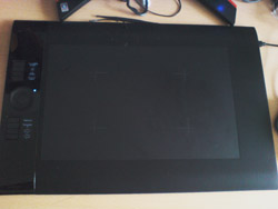 その昔約5年ほど前に購入したFAVOというタブレットから晴れてintuosシリーズに乗り換え~それもこれも、4月3日にintuos4が発売されるということでとりあえずこの風に・・・(どの風?スペックもFAVOと比べちゃうと筆圧段階が512段階→2048段階とおよそ4倍intuos3から比べても2倍くらいあるようです。まぁwindowsなので対応ソフトで使わないかぎり1024段階ですがw外見はこんなかんじちなみにサイズはラージです。FavoA5?比較まぁ~でかいですね。ワイド対応に描きやすくなったしとにかく違うのがペンを入れたときの抵抗感?鉛筆に近いです1gmで認識するようになったので前より軽い力で書き始められてなんかもうすごいですw左にあるボタンは各操作に割り当てしたりキーストロークを登録できるのでかなり便利です。(設定画面は後日UP予定ボタンとボタンの間にあるまるいのはぐるぐるできるですがこれはPhotoshop4なんかのカンバスの回転で能力を発揮~割り当てが利くのでこれもまたいろいろ使えます。正直届いたばかりでぜんぜんいじってなくて詳しいことは語れませんがただ作業がたのしくなりそうだっっ!!w