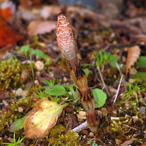 4月2日のお昼休みに、館の建物の周囲のサザンカの植え込みの中にツクシを見つけました。ツクシの時期は3月の半ば頃からだと思われ、ちょっといい感じに熟してきているな、と見ました。もうすぐ、胞子が飛び立つのではないかなぁ・・・、なんて眺めてみました。