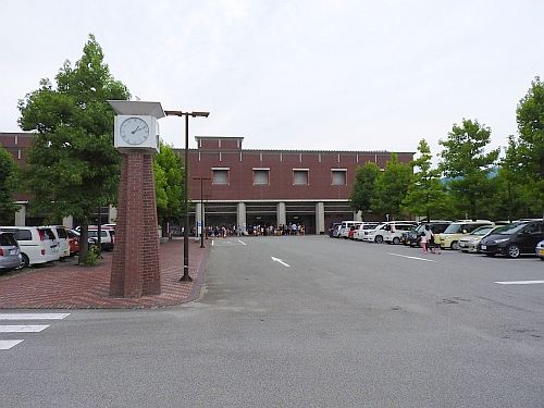 ここは、甲府市大津町にありますアイメッセ山梨です。正面のゲート脇から見ていますが、画面左手に時計塔があって、午後1時10分ほどをさしています。こんな時間にもう行列が・・・。 近づいてみました。親子さんが何組も順番をなしています。これはひょっとして、あれかも・・・。そうです。山梨の数多くの美術館・博物館・資料館などが合同プレゼンテーションを行う会場で、午後1時30分とされた開場時間を今か今かと待っていらっしゃる皆さんです。 お約束の時間になると、それぞれ思い思いのブースを目指して、自由研究プロジェクトに出発となりました。 こちらは、わが湯之奥金山博物館のブースです。ここの呼びものは、砂金採り体験・・・。実際に博物館の砂金採り体験室で行っているもののダイジェスト版で、約10分の持ち時間に砂金採りを体験し、とれた砂金は一人3粒をお持ち帰りということで実施されたもので、この写真でもおわかりのとおり、ブースの入口には、体験の順番待ちの行列が出来ていました。 で、こんなふうにして500年の歴史を追体験できる時間を過ごされていました。 合同プレゼンテーションの終了は、4時30分でしたが、その前に用意した材料がなくなり、少し早めに打ちきりとなりました。ご希望されながら、打ち切りを告げられた皆さん、ごめんなさい。「博物館に来てくださいね」とお詫びしてお許しをいただいたしだい・・・。 さて、最後の写真ですが、アイメッセ山梨の建物裏手の関係者駐車場で、午後5時頃のようすです。ブースの片付けをみんなで済ませ、各館共に乗り込んだ車に資機材を載せて「お疲れさま~」とさよならしましたが、金山博物館のチームのお片付けはたいへんで、最後の1台となってしまったのです。 ご参加・ご利用をいただいたみなさま、たいへんありがとうございました。 なお、内部的なコメントですみませんが、窮屈な姿勢を何時間も続けサービスに打ち込んだスタッフさん、また金山博物館残留で、通常対応されたスタッフさん、それぞれに、たいへんお疲れさまでした。