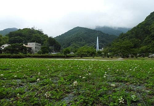 今日から7月。でもまだ梅雨空も広がり、初夏といえば初夏ですが、こんな時期にもシロツメクサの花畑が見られます。リバーサイドパークの中の緊急用ヘリポートの周りでのことです。 シロツメクサの名前、分解すると、白い+ツメクサですね。問題なのはツメクサってどんな意味? 外来の植物ですよね、でもその入って来方がすごかった。外国とお付き合いが始まった近代において、割れ物の輸送はたいへんだったそうです。梱包にはソフトな緩衝材の役割をするものが不可欠です。いまだったらあのプチプチ(エアキャップとかいうそうな)など便利なものが豊富にありますが、その昔は、草を干したものを緩衝材として隙間に詰め込むこともあったそうで、故に「詰め草」です。その詰め草としてマメ科の白い花を付けるこれがよかった・・・らしいです。