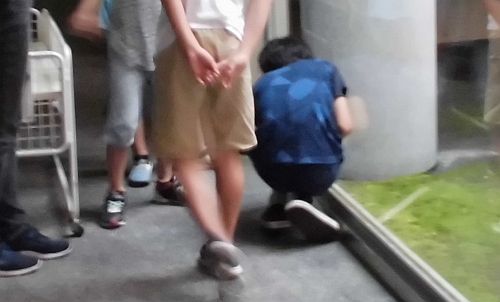 今月(7月)から、金山博物館は、閉館時間が1時間延長の夏時間になっていて、午後6時に閉館しています。が、そんな時間になると、地元の子どもたちが集まってくることがままあります。 今日は、何かが発見されたみたいで、ジッとのぞき込んだり、感想をいいあったりしています。いったいなんだろう・・・。(ご注意; なが~いのが、苦手な方は、この記事の後半をパスしてください) のぞいてみたら、これがいました。体験室のガラス壁の外側に寝そべるように(蛇は、いつも寝そべっているのですが)存在していたのです。まだ小さくて、子どもみたいな感じがしました。背中に浮かび上がる模様(斑紋)から、マムシだということになりました、その場では。マムシと聞くと、やはりゾッとしますね、子どもでも・・・。 それで、初マムちゃんかと喜んで、お近づきのスナップを撮ってはみたのですが、何といってもお目々がつぶら・・・。子どもだからか、とても可愛く見えました。 おや、まてよ・・・。マムシってこんなにお目々がつぶらなの? いつか見たアオちゃんに似ているような気もするけどな、という素朴な疑問から、真剣に調べてみました。 結論は、やはりマムちゃんではなく、アオちゃん。 アオダイショウは、子どものとき、マムシによく似た斑紋が現れるということと、頭の形が違うし、お目々も違うようです。 ちなみに、昨年(2016年)の9月17日に出会ったアオちゃんがこのブログに登場しているので、お好みの方は、ご参照ください。 また、金山博物館のまわりでの観察記録では、ほかにジムちゃんを見かけたのもあります。よろしければどうぞ。