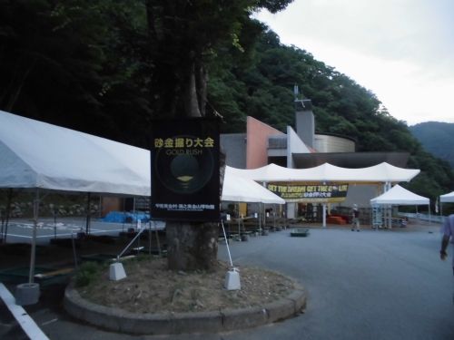 大会前日の午後7時、屋外の会場作りは、ほぼ完了に近づきました。ここまで、応援団の皆さんや峡南高校の実習生の皆さんのお手伝いもいただきながら、博物館の内外で準備作業が進められてきました。 明日、早朝のNHK-TVの生中継が予定されていますが、その打ち合わせやテスト収録なども行われていましたよ。 午後8時、まだ館内では、大詰めの作業が続いています。館長は、これで準備戦線を離脱となります。 皆さん、明日、7月29日の「砂金掘り大会2017」よろしくお願いいたします。