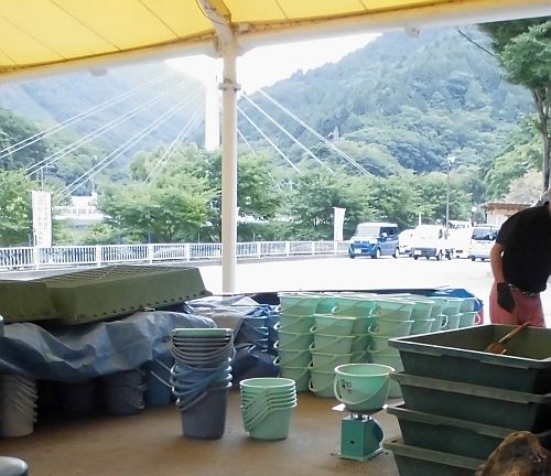 今度の土曜日、湯之奥金山博物館の名物イベントである「砂金採り大会」とその翌日の「砂金甲子園」が近づいてきました。館では、その準備に大忙しです。 写真は、さまざまな準備作業の1つ、砂の入ったバケツの用意です。参加予定者およそ200名、競技種目はそれ以上、だから200オーバーの砂バケツを用意しなければならないのです。 砂バケツ用のプラスティック製バケツですが、今年も数十個を買い増して、最終的な総数は未確認ですが、こんなにたくさんのポリバケツを保有する博物館ってほかにある・・・みたいな雰囲気の中で、準備は進んでいます。 がんばれ、わかものたち・・・。