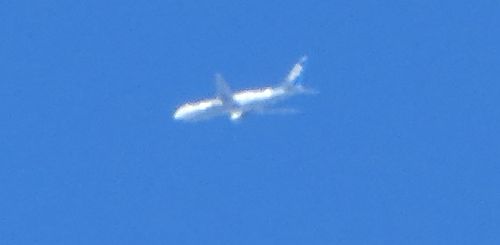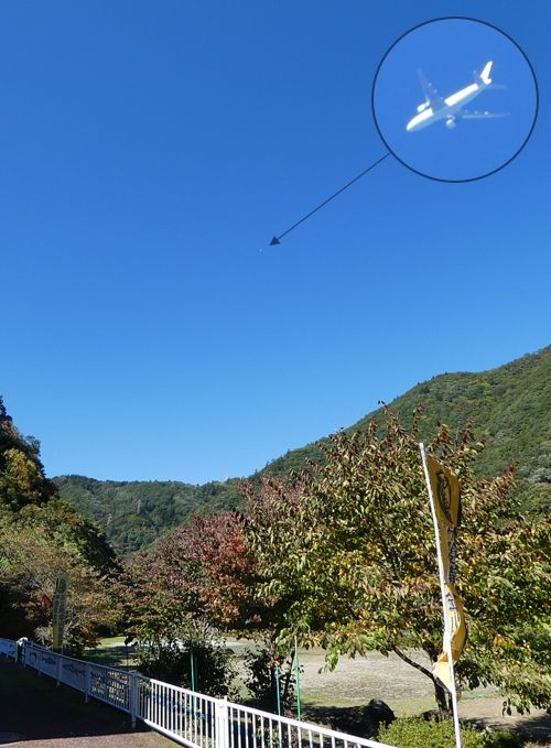 今日もまた、当地は雨となりました。気温も低く、冷たい雨が恨めしく感じられます。つい3日前に晴れた状況が現れ、しばらく続いてくれるといいな、と思っていたのですがその翌日から曇り傾向で、そして今日の雨です。いろんなところで困ってしまってます。 天候の回復を願って、23日の空の写真をアップします。以前にも書いたことがありますが、湯之奥金山博物館の上空は、民間航空機の飛行ルートになっているようで、よく通ります、こうした飛行機が。これはコンパクトデジカメでの記録なので、ボヤッとですが、おそらくANA機でしょう。13時の撮影です。 こちらも同じくANA機かと思われます。15時過ぎの撮影です。少し雲が出てきたのではありましたが、日没後も晴れが続き、星がたくさん見られました。