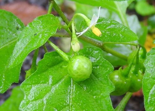 名前にホオズキが含まれていますが、外来の野生種で、湯之奥金山博物館の前庭の山際にひっそりと生えています。少し前の9月30日にも取り上げていますが、そこでは花の咲く時期を7~9月としています。もう10月も折り返しというのにまだ花も見られます。もちろん実がだいぶ成熟しているのも注目ですが。 それにしても、10月だというのに雨がよく続きます。気温も低めです。カゼなどひかないよう気をつけたいものですね。