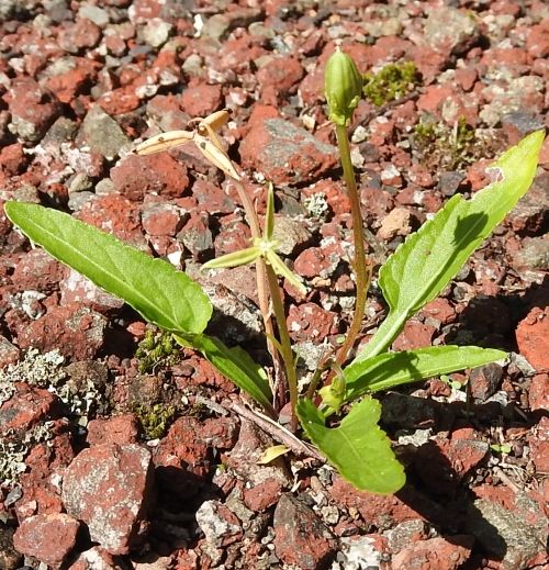 またまた舗装面に生え、がんばり続けるスミレの話です。というか、前回(9月27日)の記事「ど根性スミレ」の訂正記事であります。 こちらの写真のスミレは、前回と全く同じ個体です。前回よりも少しだけ変化がありまして、継続して観察したことで、前回の誤りに関しての気付きがあったということです。 間違いとは何か、それは前回の記事で「いま実を付けています。」としたことです。そこで実と見誤ったのは、実は花だったのです。スミレによく見られる「閉鎖花」だったのです。 前回の観察写真(観察自体は9月24日)と今回の観察写真を並べてみました。A、B、C、Dはそれぞれに対応しています。前回において「実」としたのは、とくにCを指していました。 しかし、前回のCは「閉鎖花」であり、今回の写真でも閉鎖花から実へ成熟している途中の状況が観察されたのです。 また前回の記録で、葉の裏に隠れていたAは、その時、閉鎖花であり、今回は成熟しきって鞘が3裂し、黒い種子もほとんどこぼれてしまっています。 と、とても難しい話になってしまいましたが、知識としてはあった「閉鎖花」についての現実がよく理解されていなかったので、イタズラな混乱を引き起こしてしまいました。知識と実態がきちんと結びついていないとマズイなぁ、という教訓を得たというお話でした。