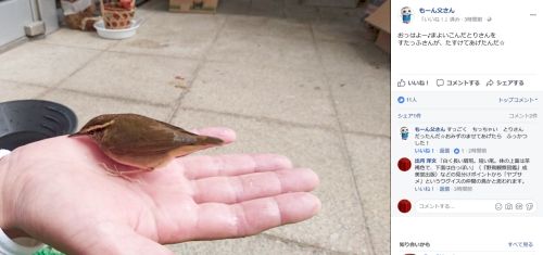 「もーん父さん」FBに拠りますと、今日(2017年10月7日)の朝、湯之奥金山博物館内に新たに侵入を試みようとしたものあり、状況から、外部を遮断するガラス壁に体当たりを試みたものの、あえなく失神してしまったもよう・・・。当該侵入者は、博物館スタッフに補搦され、情けにより水を与えられて息を吹き返し、しばしの体力回復の後に放免となった由。 当該侵入者は、これまで博物館周辺ではなかなか見かけることがなかった者で、この画像に付されたコメントによると「「白く長い眉班。短い尾。体の上面は茶褐色で、下面は白っぽい」(『野鳥観察図鑑』成美堂出版)などの見分けポイントから「ヤブサメ」というウグイスの仲間の鳥かと思われます。」とのことでありました。 それにしても、小兵ながら、なかなか勇猛な名を持つものでありましたな・・・!