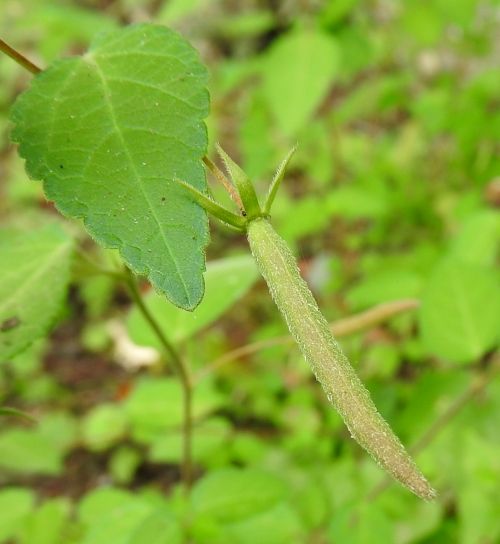 9月の中旬、黄色の花をつけていたカラスノゴマですが、花が咲けばその先、実ができるという標準的なコースをたどり、いま、こんな感じの実を付けています。鞘状で、表面に細かな毛がいっぱい確認されるものです。 これはやがて熟し、年を越える頃、鞘がはじけて種子が放出されるようです。 なかなか存在感を認めにくい植物(草本)ですが、大小たくさんの実が見られました。