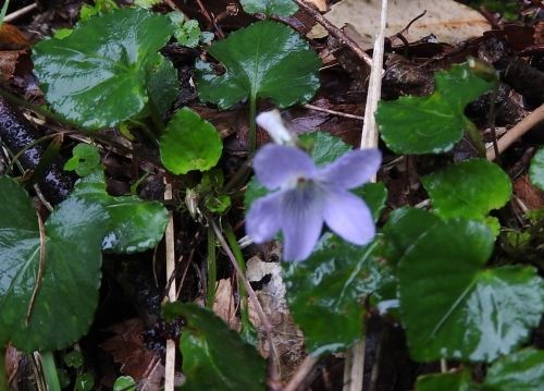 今日は、お昼前から雨になりました。雨とともに気温も低めになりました。そんな中で、ちょっとビックリ、スミレの花が咲いているのが見られました。あぁ~、雨に濡れていたせいか、ピントがずれてボケボケになっちゃいましたね。 別な個体です。こちらは、うまく撮れました。丸い葉っぱ、タチツボスミレではないかと思われるものですが、基本的には花の時期は、2~5月とされています。この頃の天気早春に似ているのかなぁ・・・。