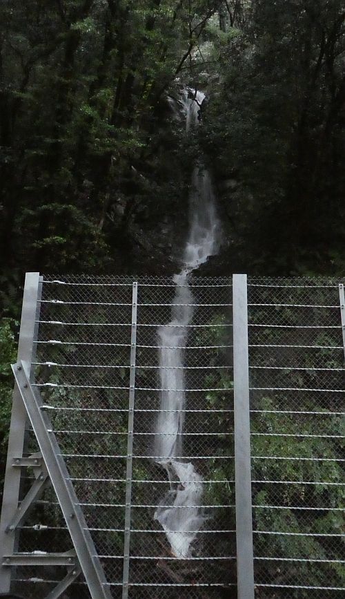 雨の降り方が強かったので、外に出ることなく館内からの撮影となりました。台風のような状況で雨が多く降ると現れるまぼろしの滝。前回の台風21号の折りも紹介しましたが、またまたの滝見となりました。