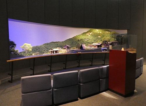 今日、必要な課題があって、あらためて湯之奥金山博物館の展示の最大の見どころの1つであるジオラマ展示室を撮影してみました。お客様の途絶えた時間を見計らってのことです。 なお、ご見学の皆様の、こうした展示室撮影は、あらかじめ博物館スタッフにお声がけ、ご相談をいただき、最低限の許諾をとっていただく必要があります。 こうして見ると、なかなかよく出来たジオラマですね。写真にしてしまうとうまくお伝えできませんが、迫力があります。 さらに手を伸ばして迫ると、500年前の産金の現場に迷い込んだ感覚に浸ることが出来ます。いやいや、一人感激していてはいけません。皆様にいっそうよく知っていただくための工夫に励まねば・・・。