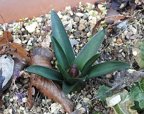 今日は、1月9日、水曜日です。 毎週水曜日は、湯之奥金山博物館の休館日となっています。 どうぞご注意ください。明日の木曜からのご利用をよろしくお願い申し上げます。 さて、写真ですが、湯之奥金山博物館の通用口脇に置かれているプランターの中のヒヤシンスのいまのようすです。寒さに耐えて少しずつ成長してきているようです。花芽も見えてきています。花咲くときがたのしみ、まだまだ時間がかかりますが、その分だけ、きっときれいに咲きますよ・・・。