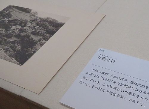 前回記事のつづき・・・です。 数ある展示写真の中で、とりわけ注意が惹かれたのは、「丸畑全景」と題されたものでした。 撮影可、だったので、がんばって撮ってみましたが、ガラスケースの中なので、こんな感じがせいいっぱい・・・。 それで、お手持ちの画像処理ソフトで、ちょちょちょいっと。この中に、彼のバックグランドが色濃く染み込んでいる・・・。
