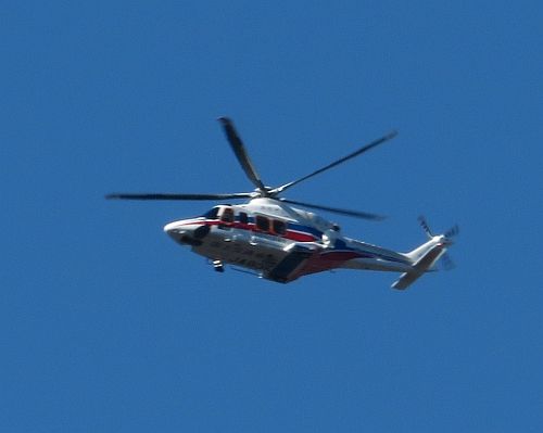 建設が進む中部横断自動車道の辺りの上空を、飛んでいくヘリコを見ました。写真がちょっとぶれてしまってわかりにくいですが、「あおぞら」の文字が確認できました。