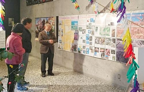 今日は、甲斐市から「新聞を見たので・・・」と、遠路お出かけをいただいたお客さまがありました。 写真は、館内でサクラ情報パネル展を見ていただいて、若干のご説明を申し上げているところをスタッフが撮影してくれたものです。このパネルの前でのご説明に先立って、寒い中にもかかわらず、直接、十月桜のある場所までご案内もいたしました。 3月後半の本格的なサクラの時期に、またお越しくださいねとお願いをして、お帰りを見送らせていただきました。ほんとにありがとうございました。