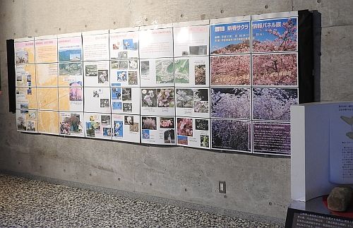 湯之奥金山博物館のエントランスホールの壁面で、「2019 新春サクラ情報パネル展」を開催中です。A3サイズのパネルが36枚並び、下部リバーサイドパークのサクラの話や、現在も咲き続けている十月桜の四季、また富士川流域のサクラ情報などを内容に、正月気分をより華やいだものにしようと、ない知恵をしぼったものとなっています。 お正月気分がただよう1月の前半、ご来館の際は、こちらも眺めてやってください。