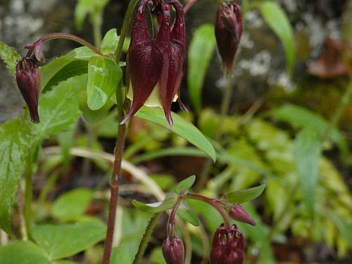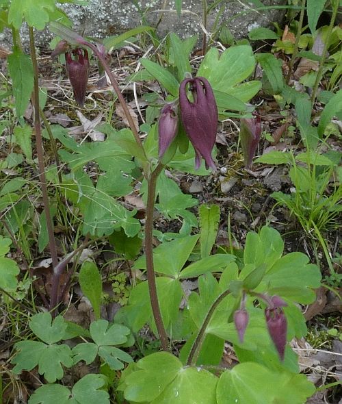 湯之奥金山博物館の前庭の山側で、オダマキがいま、いくつもつぼみをつけています。中には、もうすぐ咲きそうと思われるものも・・・。