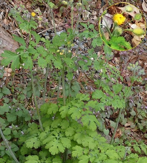 クサノオウがつぼみをまもなく開かせようとしているのを見ました。これが、あたりでは、いちばん早いもののようです。というか、数日前に、咲いているのを見たような気もするのですが、おかしいなぁ・・・。 その株のお隣に、こんな状態のものを見つけました。クサノオウの株の上半が、何ものかにムシャムシャと食べられてしまったようです。おそらくシカでしょう。 クサノオウの咲き出し(最初の観察)は、昨年は4月15日だったようです。また、クサノオウの紹介をしている過去記事も別にあります。こちらから・・・。