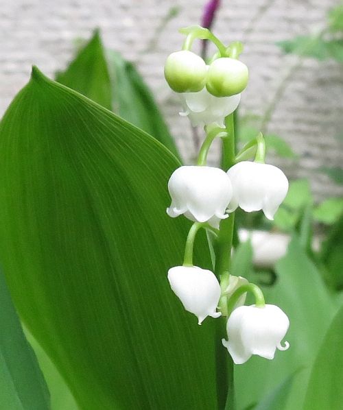 スズランの花、見られるようになりました。かわいいです。 基本的に下向きに咲いていますが、1つだけ、横向きで花の内側がのぞけるものがありました。 湯之奥金山博物館の通用口の脇の植え込みの中です。お時間あったら、かわいがって見てやってください。