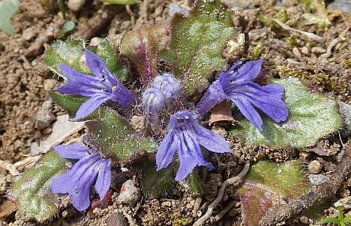 湯之奥金山博物館の前庭の山側に、カキドオシの花が見られます。前回のキランソウとは、属レベルでは違っていますが、同じシソ科なので、花の作りに似ているところがあります。 シソ科カキドオシ属の多年草のカキドオシは、茎が比較的長く横に這い、垣根を通り越して広がるところから、この名があるそうです。花の時期には、茎が立って、葉の付け根の脇から花がつきます。 一面にこの花が見られることが多いのですが、金山博物館の前庭の山裾の、この場所は、カキドオシが一面に咲くほどには、環境的に適していないのかもしれません。