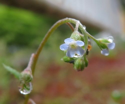 博物館の周辺では、いま、このキュウリグサの花がいっぱい見られます。 いっぱい、といっても とても小さな花なので、こうしてマクロ撮影したりしないと、その花の美しさは、確認できませんが・・・。