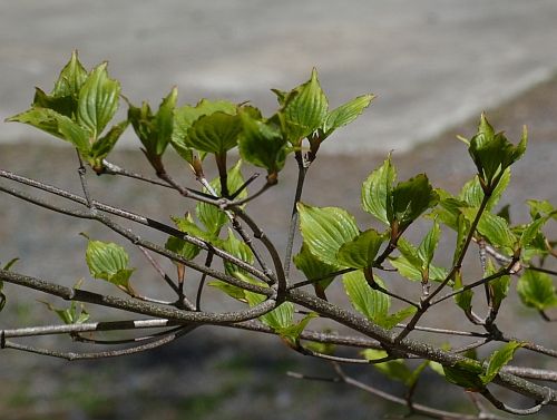 やがて花の時期を迎えるヤマボウシは、いまはまだ若葉が開いて少し、という感じです。つい先日まで、枯れ枝のようだったのに、もうこんなに、季節のめぐりの早さを感じます。