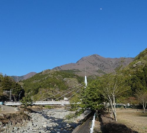 春の空 ふりさけ見れば 下部なる 五老のお山に いでし月かも 『古今集』所収歌のパロディです。そう、東の空、五老峰の上空に 月が出ていました。 もそっと 近う・・・。メロディーブリッジまで近づいて見ました。 斜張人道橋のワイヤー越しに見ました。 そして、まじめに望遠しました。いいお月さまです。《追記》 冒頭で触れた歌のもとは、「天の原 ふりさけ見れば 春日なる 三笠の山に いでし月かも」は、奈良時代の官僚、阿部仲麻呂のお歌で、彼は遣唐使として中国に渡り、彼の国でも官位を上り、ついに客死した方です。この仲麻呂の歌は、唐の国にあって、故郷を思った歌とか、日本を去る時に振り帰りつつ詠んだとか、いわれています。『百人一首』の歌としても知られていますが、いまはやりの万葉調のすてきな歌です。