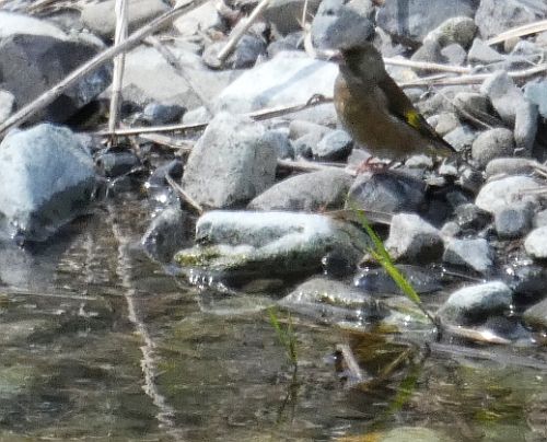 下部川の河原の水際に、カワラヒワの姿を見ました。河原にカワラヒワ、おもしろいな、と思いましたが、いままであまり河原で見た意識がなかったので、その名のいわれを調べてみました。バードサンクチュアリの整備などに取り組んでいるサントリーさんのHPのなかにある『日本の鳥百科』のカワラヒワの説明には、「繁殖後に草地の広い河原でみられることが多いので」こうした名前が付けられているとの記述がみられました。 そのカワラヒワ、時々、水面にくちばしを差し込み、水を飲んでいるみたいでした。がんばれっ、カワラヒワ。 4月22日は、アースデー。地球規模の環境やそのシステムに感心をもち、考えていく日だそうです。 カワラヒワが水辺で水を飲む、その川の水のめぐりや、カワラヒワのこれからの繁殖のこと、いろいろ考えながら、下部川の流れを見つめた時間がありました。