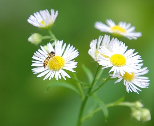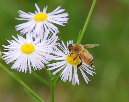 香り漂うヒメジョオンの花に、ミツバチがやってきました。 香りだけじゃなく、密だよ、ってミツバチがいいました。