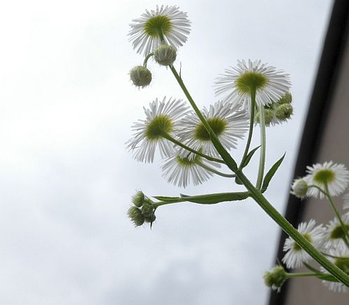 つぼみから開花へ。微妙なタイミングのヒメジョオンの花が見られました。