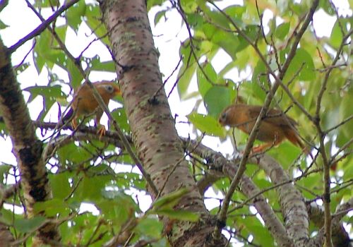 ガビチョウです。下部リバーサイドパークのサクラの木の枝ふところにいるのが観察されました。このカットでは2羽ですが、最低でも3羽くらいいました。 なかなかうまく撮れませんでしたが、この鳥、たいへんな鳥です。鳴き声がすごくうるさいのです。日本の雰囲気には合わない・・・。日本よりずっと南の地域のご出身(中国南部とか)。で、いつしか温暖化の進んだ日本に進出してきて、すっかり居着いてしまった・・・。 この鳥を見るたびに、このままでいいのか、日本の環境は・・・。心配になります。