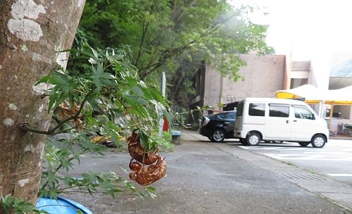 湯之奥金山博物館の前庭の山側で、こんな光景に出合いました。もちろん主題は、セミの抜け殻ですよ。 最初に見た時、マウンティングしてるセミの抜け殻かと思ってしまいました。そんなわけないだろう、というご意見が聞こえてきそうです。 で、結果的にどう見るかというと、始めに上の枝に直接着いている抜け殻が登場し、しばらくしてから(どれくらい時間をおいたんだろう・・・)地上に上がってきた次のやつが、同じ場所で脱皮を試みたということであろうと・・・。 その傍らで、通常の抜け殻が複数見られました。セミのデビュー銀座という場所なのかな、そんな感じがしました。 過ぎしこの夏の思い出の1つです。(初期投稿:8月31日5:50 編集再投稿:8月31日11:20)