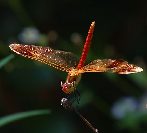 今日も暑かったですね。まだまだ「残暑お見舞い申しあげます」という感じです…。 さて、写真は、昨日、湯之奥金山博物館構内で観察したミヤマアカネです。特段の暑さの時に、お日様に対抗する手段として見られるお決まりのポーズをしているところです。 向きを変えて見ると、こんなにも反り返るようにしています。オリンピックの体操選手の鉄棒種目などでの決め技を連想してしまいました。かっこいい・・・。 これは、すでに何度か取り上げていますが、“トンボの尻上げ”と呼ばれるもの。体の軸を太陽に向けることで、日照を受ける表面積を最小にして暑さ回避をしているといわれています。 こちらは、博物館のお隣、下部リバーサイドパークで見られた別個体。見事な反り具合ですが、反り過ぎてない?(初回投稿:8月20日16:35 修正:8月20日22:43)