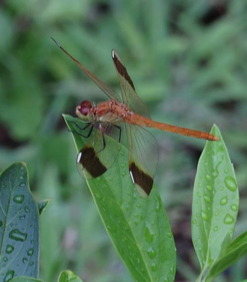小雨降る中のミヤマアカネです。8月18日の撮影でした。この夏は、雨が多かったかな・・・。 雨が多めで、日照時間が少ない・・・そんな夏だったことを忘れてしまいそう、時間が経てば。そんなことも、こうして記録しておくと夏の思い出の1ページになるかと・・・。 そういえば、昨日(8月30日)、気象庁から「東日本日本海側と西日本の日照不足と長雨に関する全般気象情報 第1号」というのが発表されたそうです。そこでは、情報の題名のとおり地域を限定したものとなっていますが、「8月18日頃から曇りや雨の日が多く、日照時間が少なく、降水量の多い状態が続いています。この状態は、今後10日間程度は続く見込みです。農作物の管理等に十分注意してください。」となっていますが、傾向として当地も同様ではなかったか、と心配されます。 それは山梨の名産のモモの収穫期に糖度が低めだったり、ブドウの房に病気が着いたり色づきが悪かったりなど、農作物にも少なからぬ影響が出ているという報道がなされています。今秋の穏やかな天候推移が期待されます。