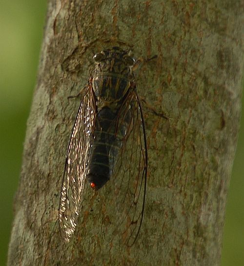 当地でよく見られるセミ、アブラゼミに、ニイニイゼミ、ミンミンゼミがあって、この夏、それらをご紹介していますが、ツクツクボウシをわすれていました。 8月24日に撮影したものを今回、ご覧にいれます。 1点目もこちらも同じ個体で、下部リバーサイドパークのヤマボウシの木で見たものです。ヤマボウシにツクツクボウシ・・・なんて洒落をいうつもりでなく、実際にヤマボウシの木が観察しやすいのでありました。 名前の通り、つくつくぼーし、と鳴いているタイミングで見つけ、撮影しました。動画もあるのですが、このブログでは動画はのせられないみたい。ざんねん。 これも過ぎにし夏の思い出の一コマでした。