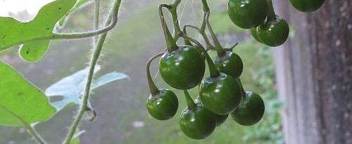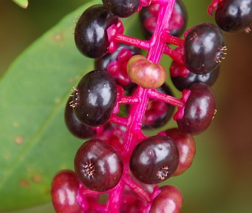 ヨウシュヤマゴボウは、博物館の西側裏手に見られます。その実は、完全な球形ではなく、やや扁平な丸い実です。熟すと濃い赤紫になります。 この植物には、いやな記憶があります。かなり前のこと、韮崎市内の史跡を探査していたとき、新しい白い運動靴を履いていったのですが、帰ってきた時、白い靴にまだらに赤紫の斑点のようなシミがついてしまい、その後、よそ行きには履けなくなってしまった・・・、というものです。 そうです、この実は、果汁が赤インクみたいになるので要注意で、原産地のアメリカでは、インクベリー(Inkberry)とも呼ばれるのだそうです。